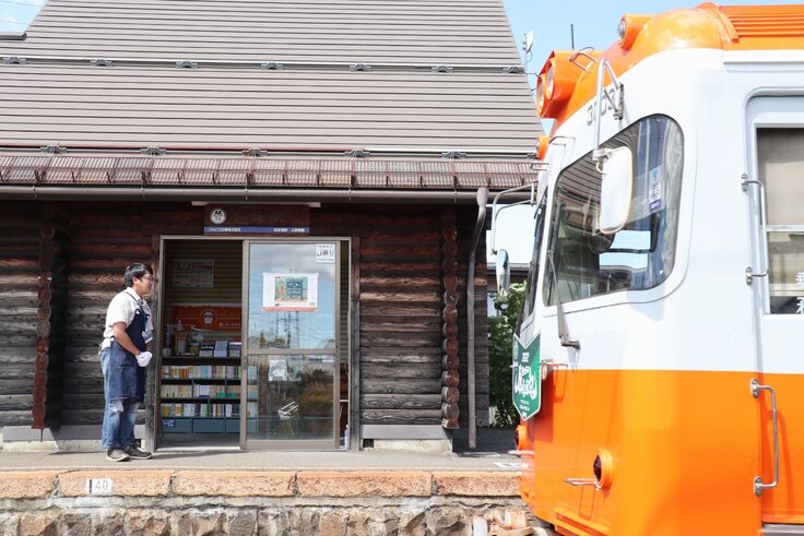 上高地線下新(しもにい)駅の駅舎を本屋に見立て、月に1回古本の販売を行っています。コロナ禍を背景に新たな形での本を通じた交流の場づくりを模索する中始まった取り組みですが、沿線地域の方や上高地線のファンが集まり交流を楽しむコミュニティスペースとしての役割も果たしています。