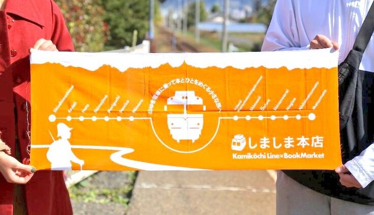 上高地線の発信を目的としたオリジナルグッズを制作しています。画像の手ぬぐいは2022年を以て完売となっていましたが、今回のクラウドファンディングに合わせリニューアル&復刻する計画です。