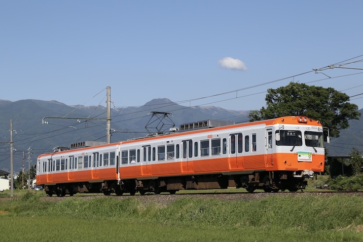 2017年6月には大型観光キャンペーンの一環として装いを一新。グレーとオレンジのツートンカラーは、昭和の時代の上高地線電車(モハ10形)をイメージしたものです。当時を知る人には懐かしく、のどかな上高地線の沿線風景にもマッチした3003-3004号車の姿は、沿線にお住まいの方や、鉄道ファンに「モハカラー」「オレンジ電車」として親しまれる存在となってゆきました。