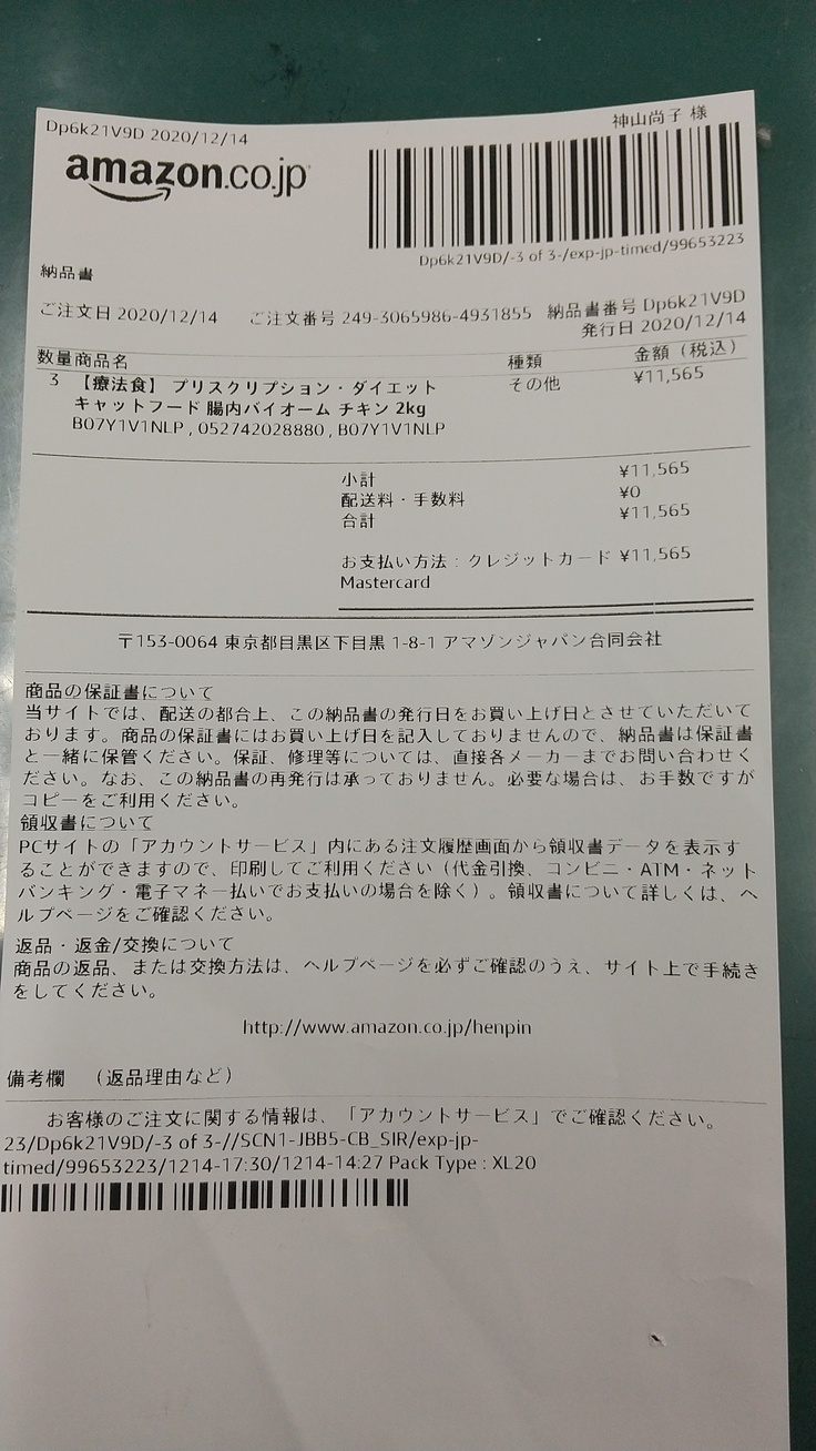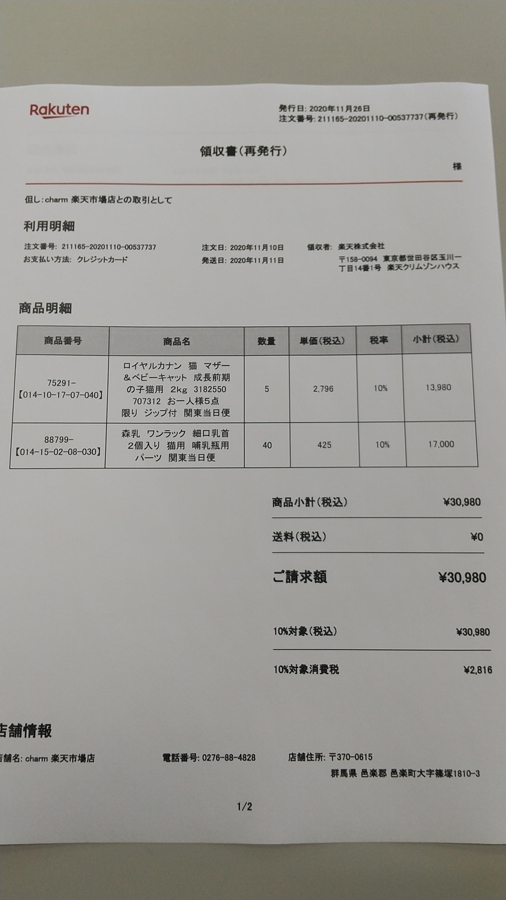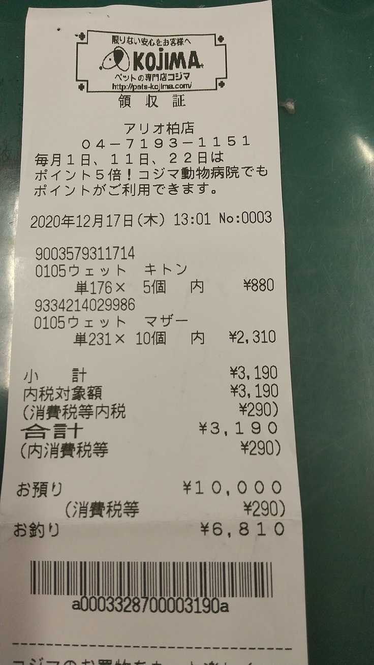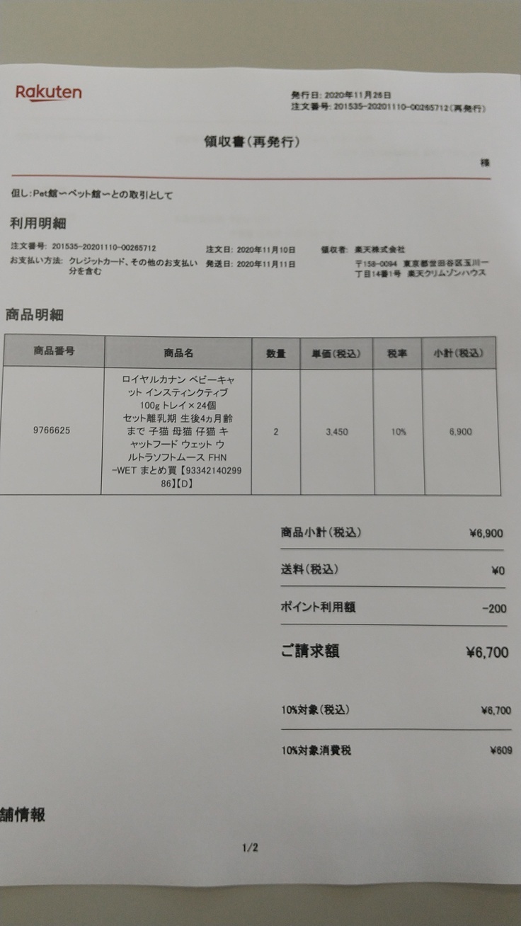 【フード購入収支報告】