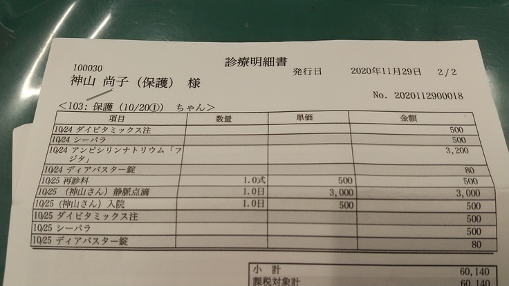 ※医療費明細枚数が多いため表にまとめています。一部掲示します。