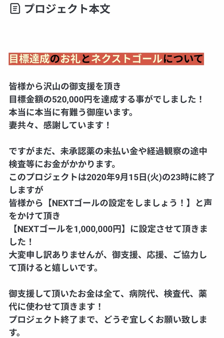 まず始めに、妻と相談するとTwitterで書いていたNEXTゴールですが