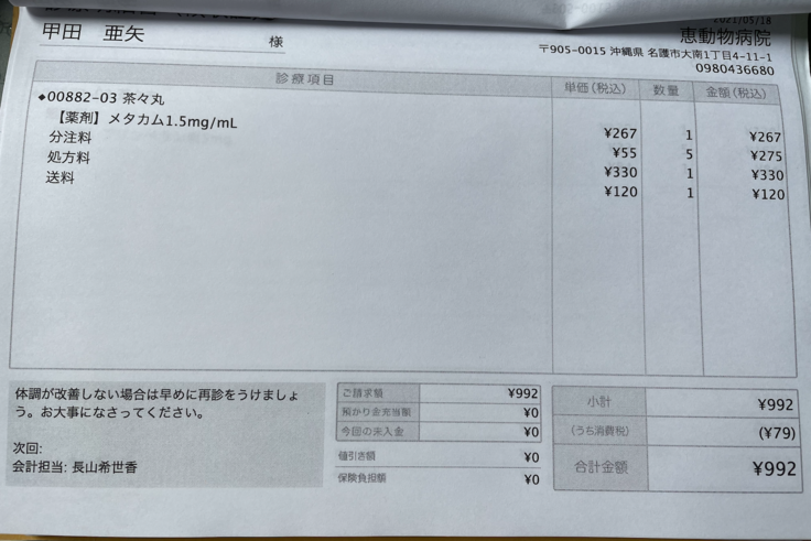 3つも名前があることに困惑しましたが、病院に連れて行った時