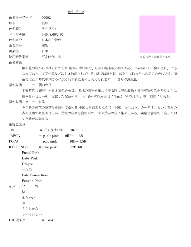 色の年代、色の出し方、マンセルの位置、色のイメージ、配色方法などの色彩データをインターネットで発信します。