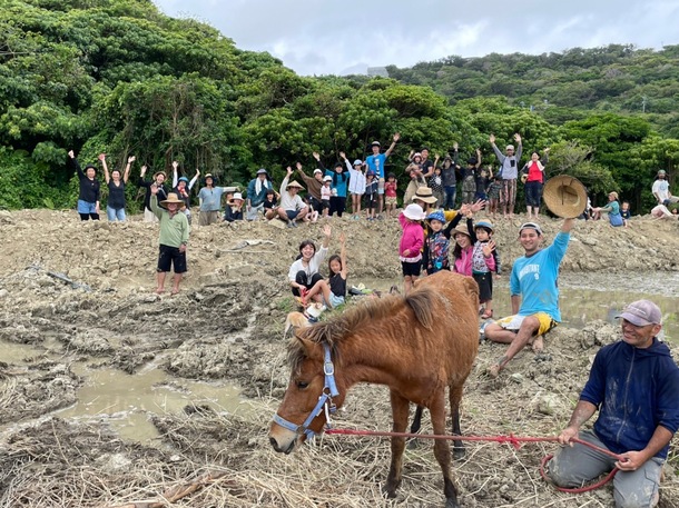 先日、与那国馬のデイゴ、ウルマ2頭にも手伝ってもらいながらチャレンジしているお米作りの一期目の田植え作業を行いました!