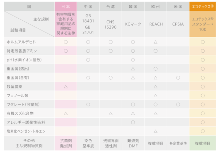 引用:スタンダード 100 - 繊維の安全証明「エコテックス®」-日本公式サイト- (oeko-tex-japan.com)