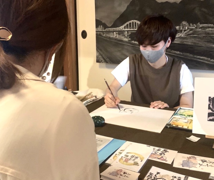 その頃に母に元気がないと感じ、若葉の絵を描いた絵手紙を送り、とても喜んでもらいました。「自分の言葉と絵で喜んでもらえるなら、たくさんの人に描いてみたい。」との思いから小学校6年生の12歳から本格的に活動を開始。小学6年生の秋には初めての個展を開き、高校は地元の美術科に進学し活動を続けました。21歳となった現在までに12000枚以上の世界にひとつだけのメッセージである“ことば絵”を届けてきました。