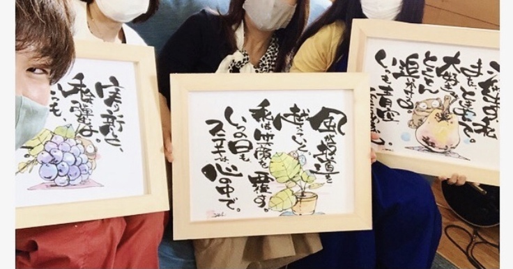 一人一人に降りてきた絵と言葉を即興で創作するスタイルを“ことば絵”と呼んでいます。 “ことば絵”を描き始めたのは小学校5年生の時に絵手紙の本を読んだことがきっかけです。