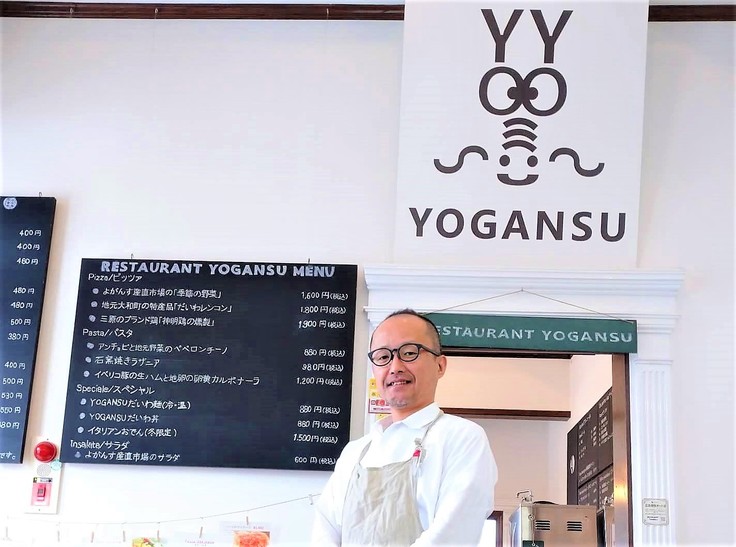 はじめまして。高東浩昭です。広島県三原市大和町の山中に在る開設約25年の小さな道の駅「よがんす白竜」の運営を引き継いで9年になります。生まれ育った「地元の特産品を有名にしたい」「町全体を賑やかにしたい」との思いから、駅内にあるレストランで地元の特産品とイタリア食材を組み合わせて薪窯で焼く、本格的な薪窯焼きピッツァの提供を始めました。開業当初は来場者が増えず苦労しましたが、現在ではレストランを目的地として市外から数多くの人が訪れる「知る人ぞ知る道の駅」に生まれ変わりました。更に4年前からは2号店にあたる「Pizzeria YOGANSU」を運営しています。現在は会社の代表として新事業や新商品の企画・開発、宣伝をしたり、店舗運営やピッツァづくりの研修をしています。