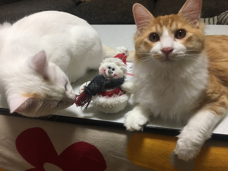 右がコ太郎です。母譲りの毛がフサフサでチュールが大好きご飯大好きです。