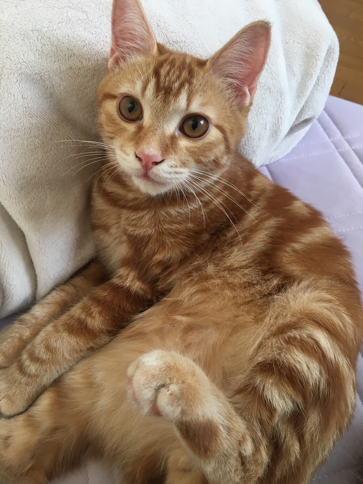 その子がチャ太郎です。人懐っこくてご飯への執着心が凄いです。人間みたいな面白い寝方をします。