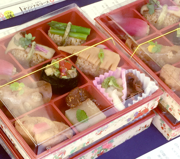 野菜の寿司や、ハンバーグなどのお弁当、スイーツなど多様なベジフードを販売されていらっしゃいました。