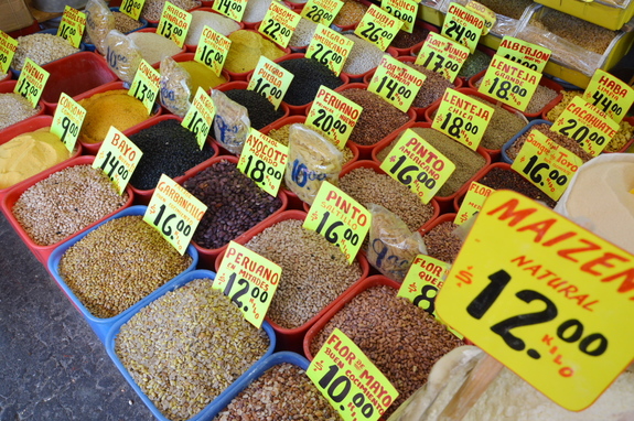 (1994年に自由貿易協定を結んだメキシコの市場。外国産の穀物も増えている)