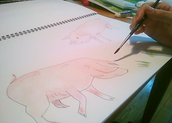 今日は映画に挿入するためのイラストを描いてもらっています。チラッと見せると、こんな感じです。