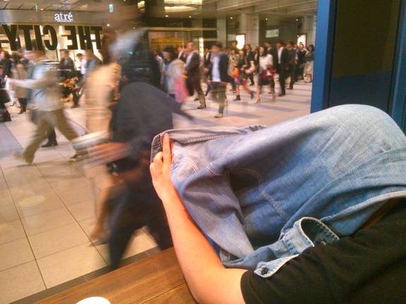 都会の喧騒の中、撮影してくださいました。越智さんは、最近は「切断ヴィーナス」(白順社)などの作品をつくっている写真家です。