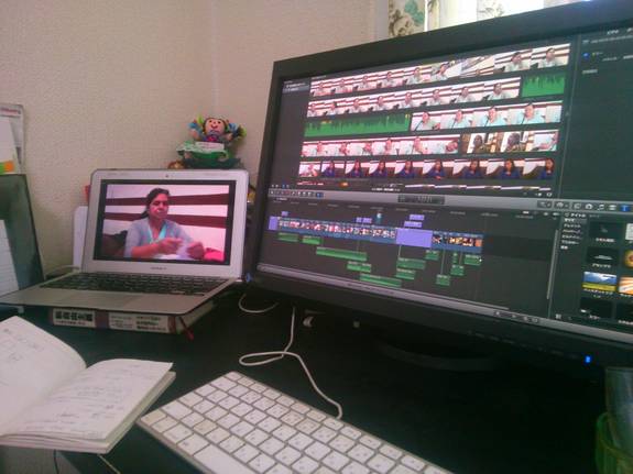 (取材ノートを取り出し映像制作ソフトで編集中)