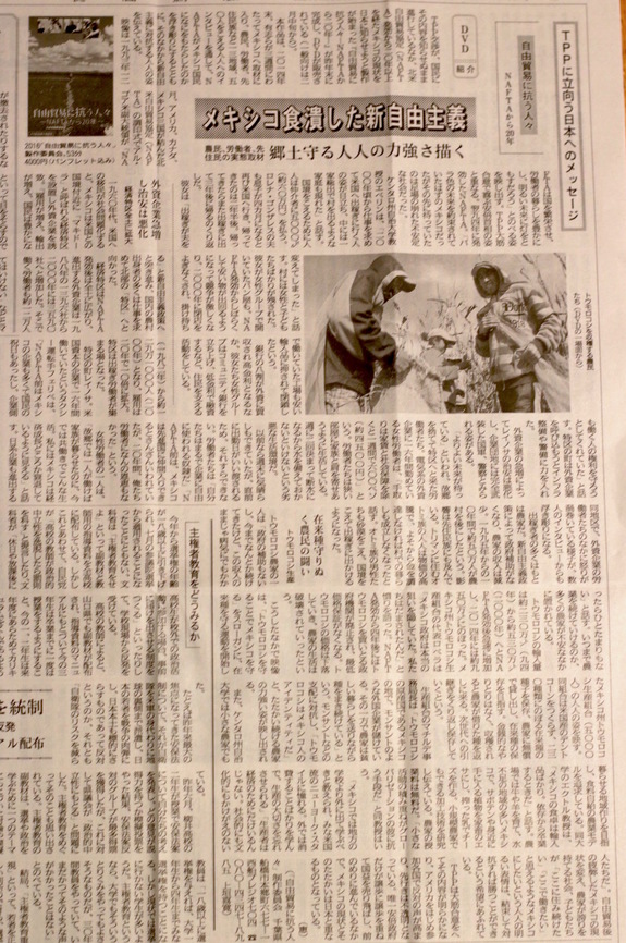 「メキシコ食潰した新自由主義 郷土守る人々の力強さ描く」というタイトルで11段の大