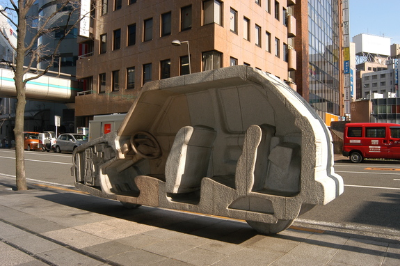 さて、ファーレ立川アートには、半分に切られた車の作品もあります。これは歩行者が乗れる歩行者のための車。このアートは歩道から生まれたとされていて、模様も色も歩道と同じ。上から見るとまるで歩道に溶け込んでいるかのようです。なお、作者のヴィト・アコンチさんはアメリカ人ですが、この「車」は静岡ナンバーです。