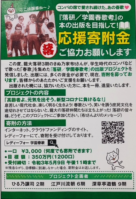 ご協力いただいた方には、『落研/学園春歌考』を1冊贈呈します。