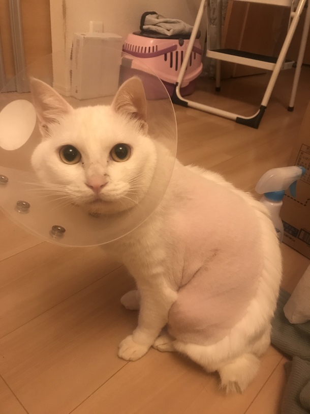 お腹の真ん中の傷の治りが悪くてまだ舐めたりしたらダメなのでエリザベスカーラーと術後服はしばらく続きそうです…泣
