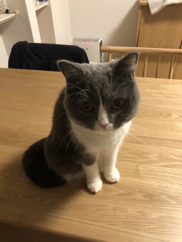 ふと気がついたらルナちゃんがテーブルの上に登っていました。本当に久しぶりのことです。