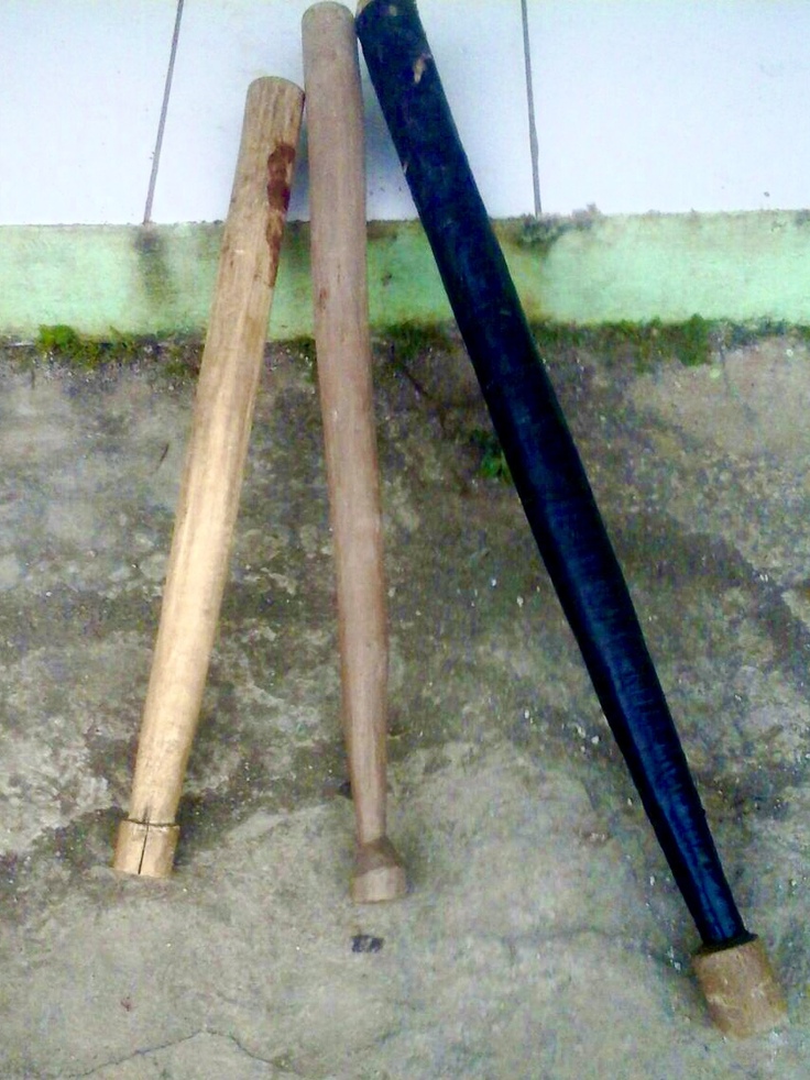 現在、インドネシアの子供たちがチームで使用している木製バットは、実際にはボールを打つことが出来ない木材を荒削りした品物なのです・・・
