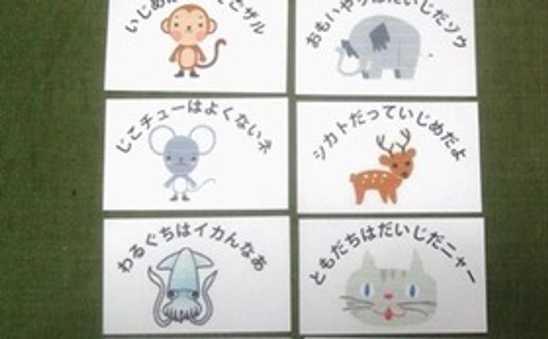 最後にいじめ防止のカードを配り、アンケートに記入してもらいます。