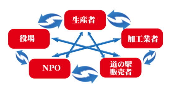 一次生産者、菓子製造者、販売者そしてNPO法人が一つに繋がるPJです。
