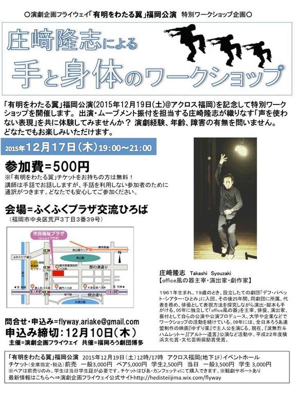 12月19日(土)の『有明をわたる翼』福岡公演に先立ち、先触れワークショップを12月17日(木)に福岡市で開催します!