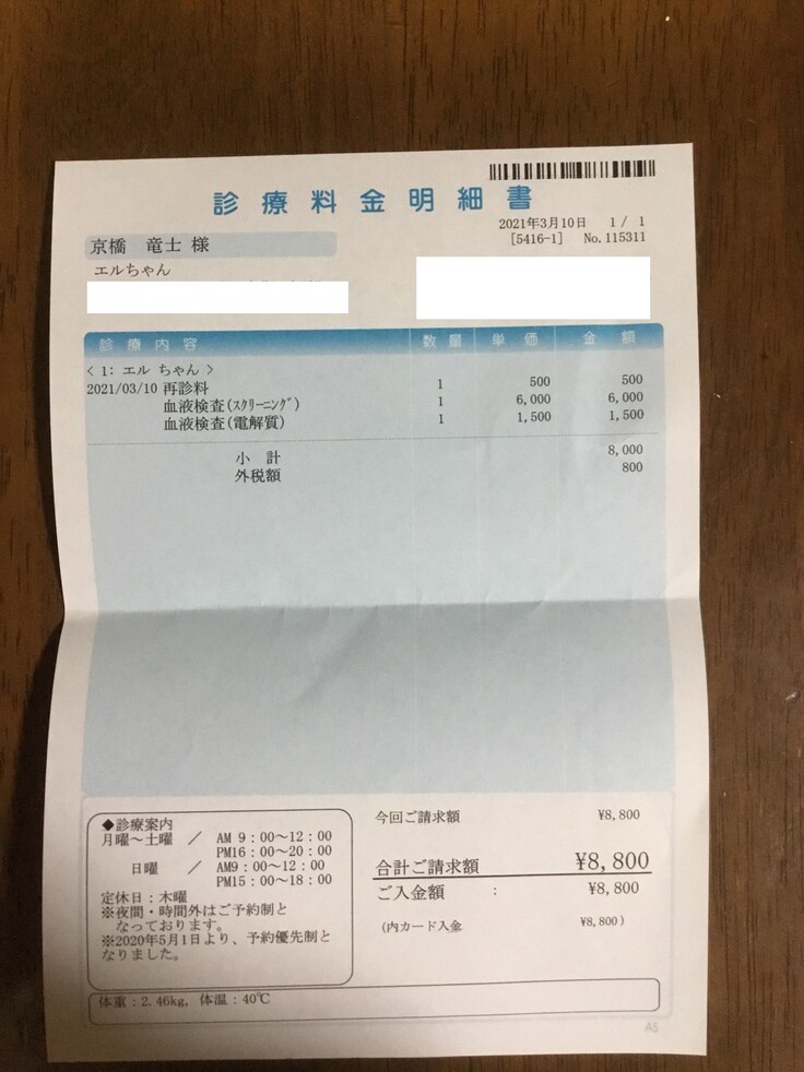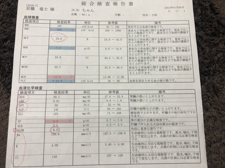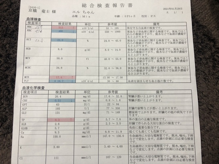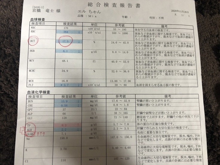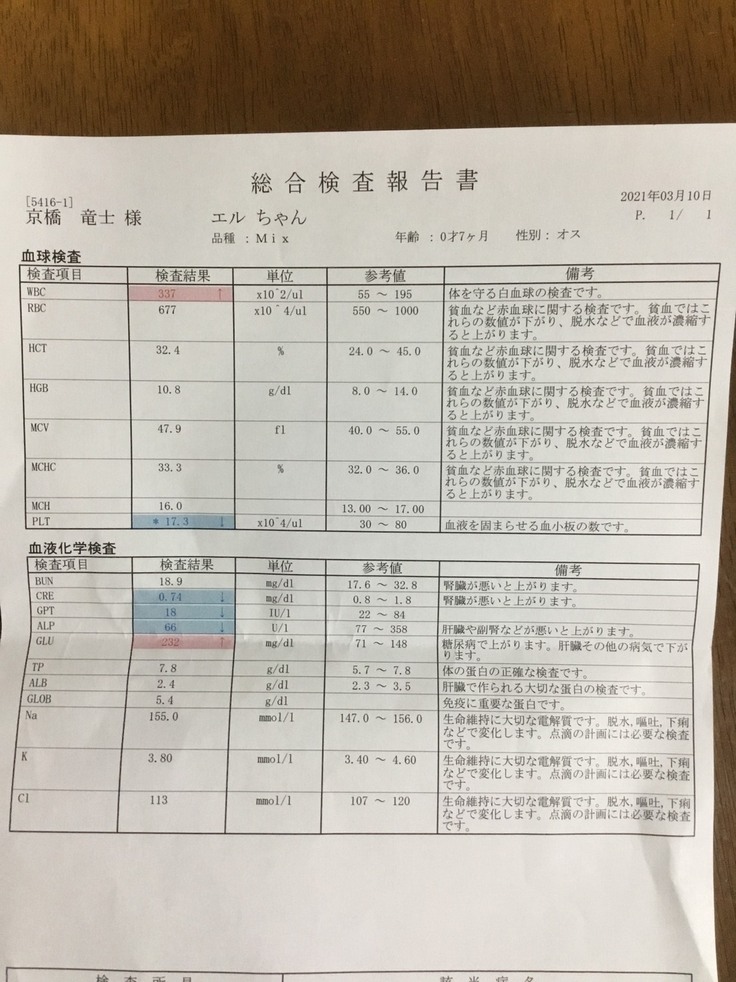 11月29日から2月20日の間、投薬を行い経過観察の期間に入っていましたが、徐々にご飯の食べる量が減ってきたので、本日(3月10日)病院に行き血液検査を行ったところ白血球数と血糖値が基準値を超えており、再発の可能性があると診断されました。「体内で炎症が起こり白血球が増え、炎症のストレスで血糖値が上がっている可能性がある」と言われました。