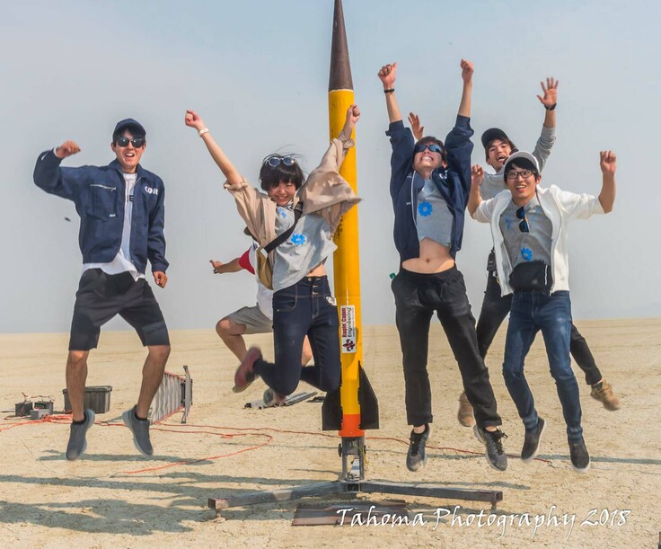 今年2月に立ち上がったばかりの宇宙ベンチャーです。現在代表取締役1名と数名のボランティアだけで運営しており、人手もお金も足りない状況です。代表取締役の角地は2016年からアメリカ・ネバダ州にあるブラックロック砂漠でハイパワーロケットの打ち上げを行っており、2019年にアメリカのハイパワーロケットの最高資格を取得しました。現在48歳ですが心身ともに若く、若者に負けない中年の星です。宇宙ベンチャーの他、特許調査の仕事もしています。保有資格は、博士(工学)、第3級アマチュア無線技師、火薬類取扱保安責任者(乙種)、TRIPOLI Rocketry Association Level3など。下の写真は今年アメリカのブラックロック砂漠でロケットを打ち上げた際に撮った写真です。