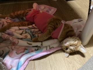 避妊手術後は少しぼーっとしていましたが、ご飯もしっかり食べて、尿も便も出ており、体調変わらず過ごせています。