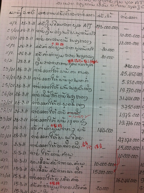 たしかにカンプーさんの帳簿は、ときどき間違っていたり、理解に苦しむ部分があったりしましたが、彼に聞くと、「これはこういう意味だ」としっかり説明してくれます。