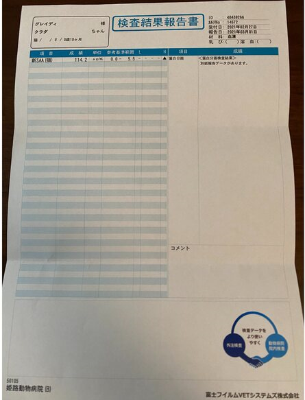 ・SAAが「114.2μg/mL」(基準は0.0~5.5)