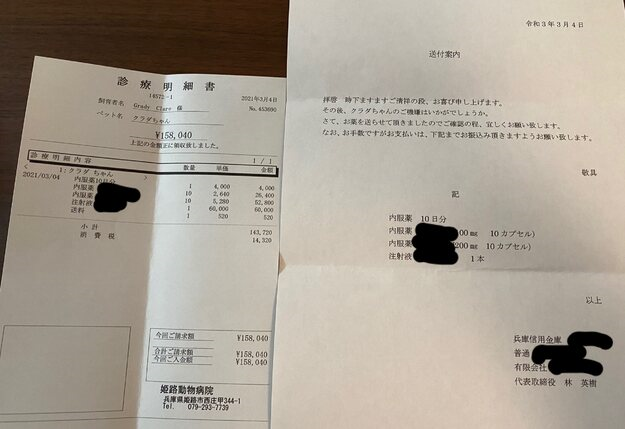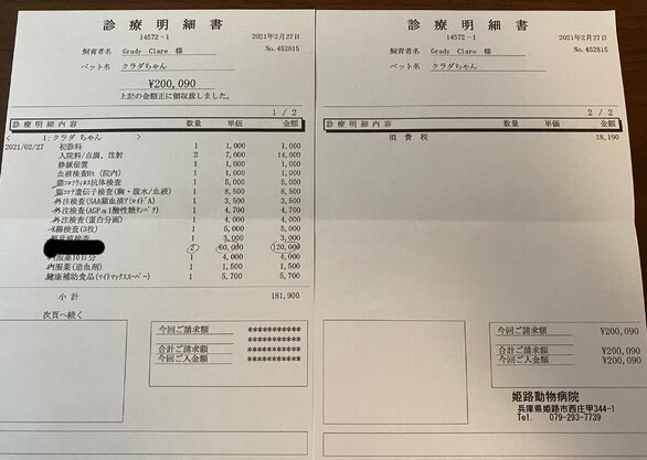 早速姫路動物病院と予約を取って、2月26日にクラダちゃんを診てもらいました。