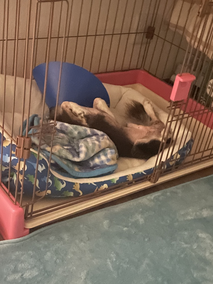約1ヶ月の入院生活をしていたチョコは家に帰ってきてリラックスして寝てくれていました。