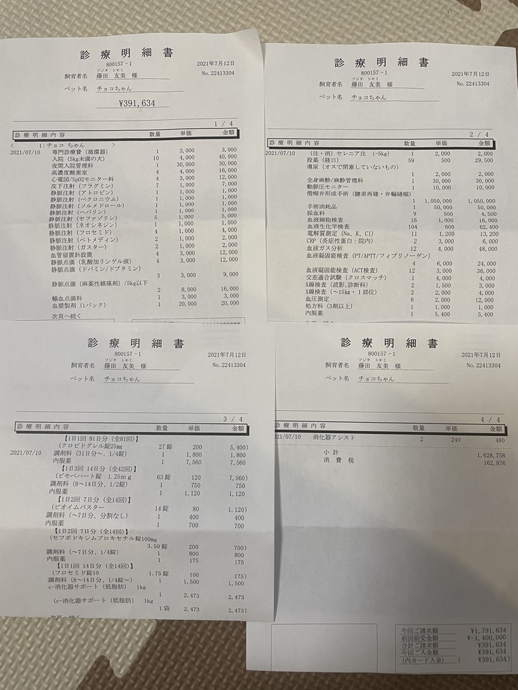 皆様からいただいたご支援はこの度のチョコの手術費に全て使わせていただきました。