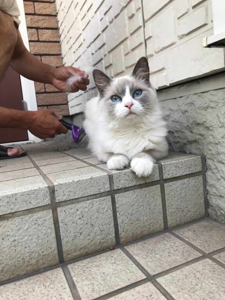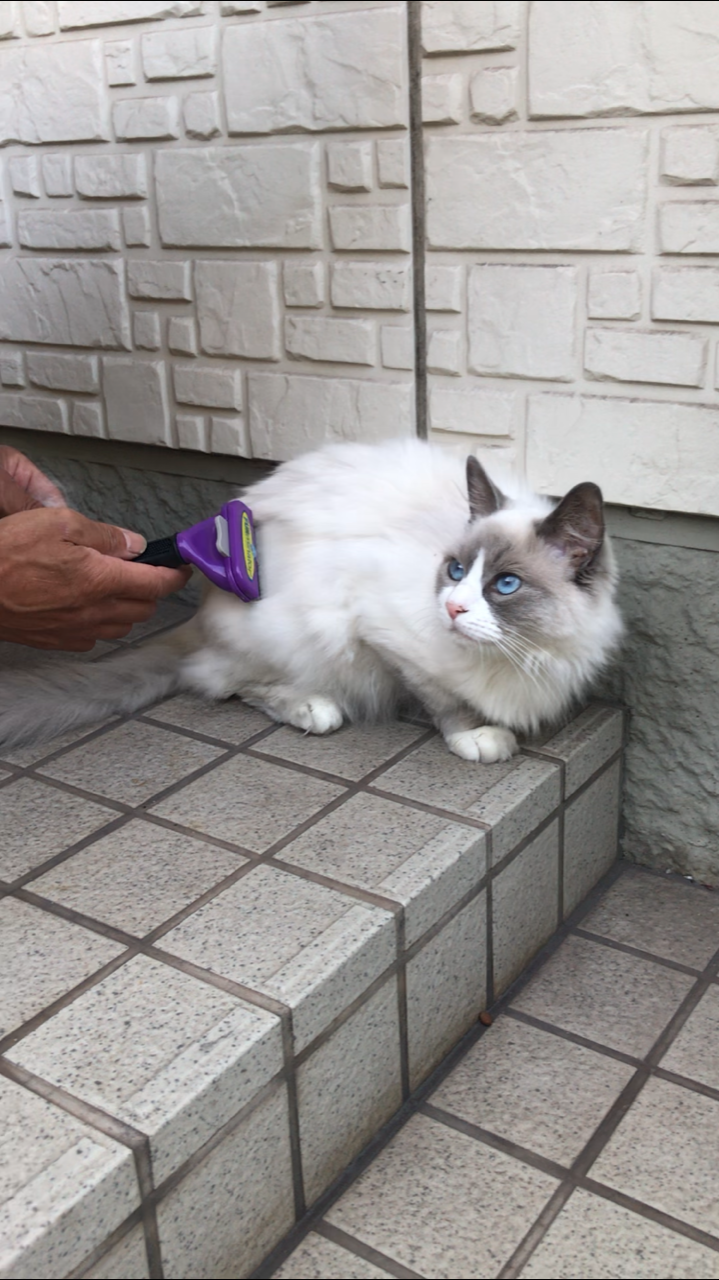 ミミは長毛なので毎日ブラッシングしているのですが、すごく毛が抜けるので今日は玄関先でブラッシングをしました😺