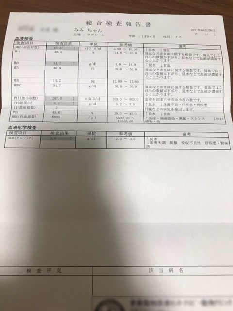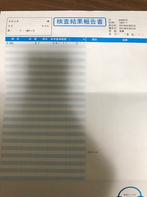 経過観察1か月目の血液検査の結果です😺