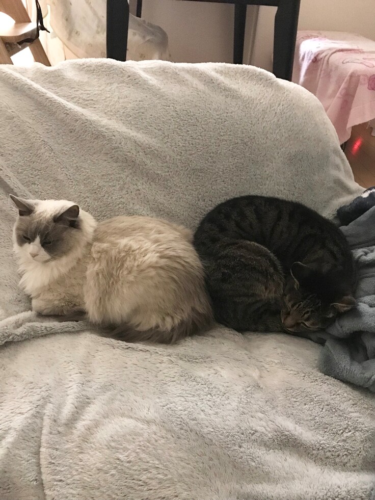 こんなにくっついて寝ているのは初めてで慌てて撮った1枚です😲❕