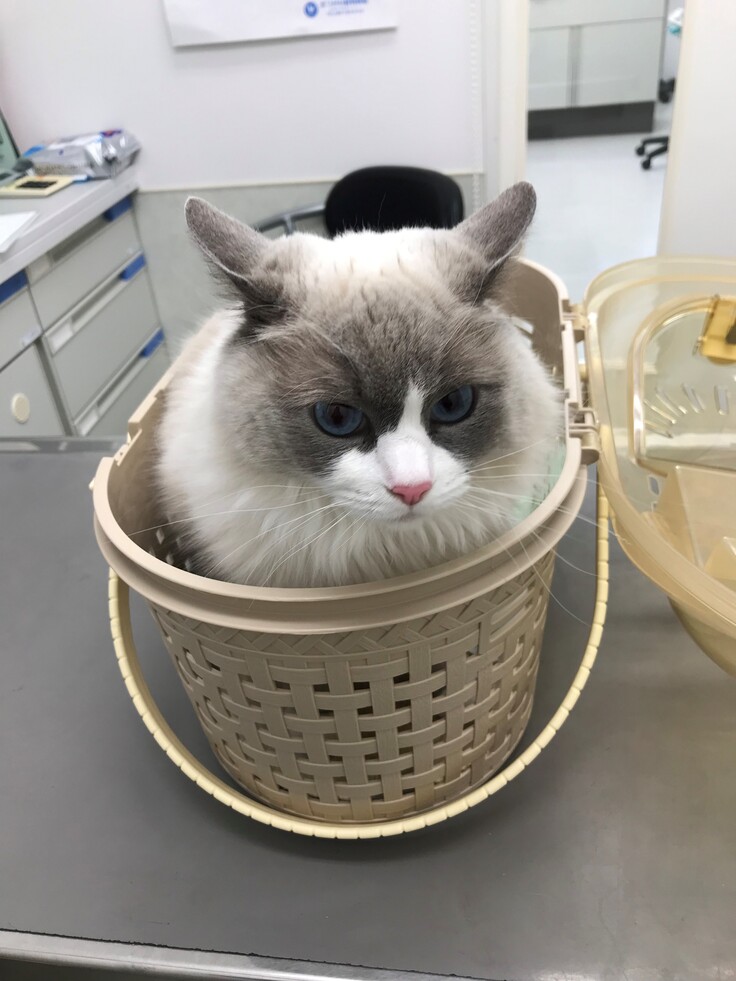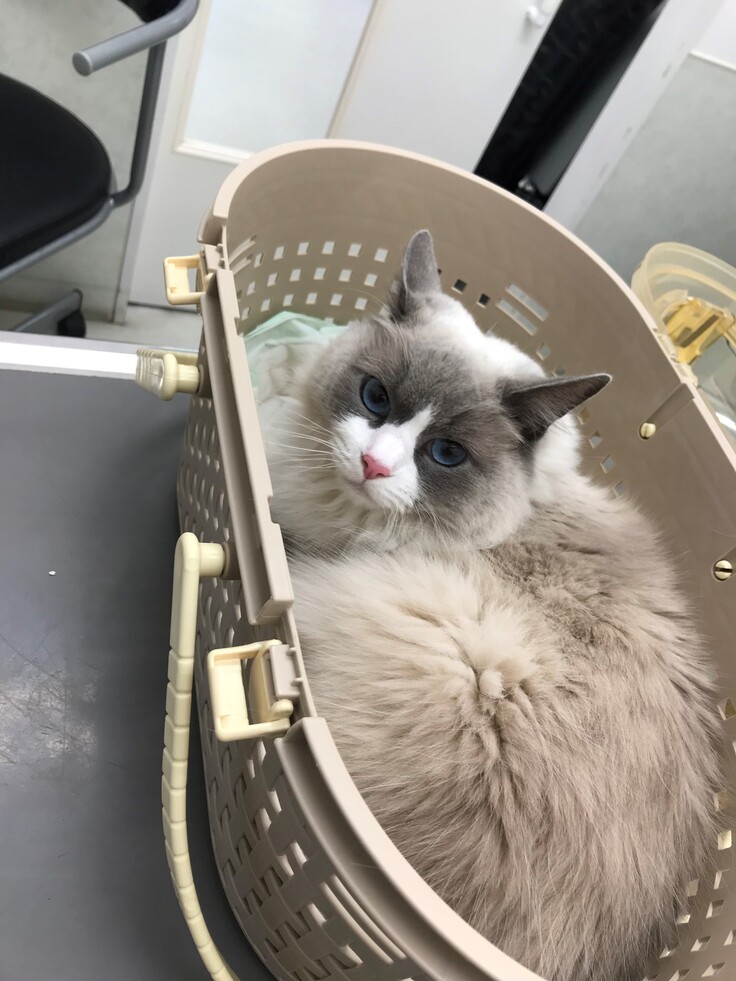 診察台に乗っておくのは怖いのですぐにキャリーに入るミミちゃんです🐱💦
