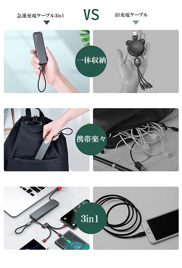 その他 コンパクトで持ち運びをスマートに。3in1急速充電ケーブルMAGIC BOX