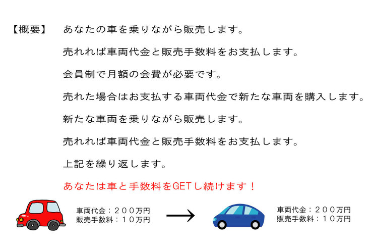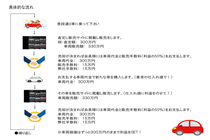 「会員様を募り月額の会費制で会員様の車の委託販売をする」という事です。