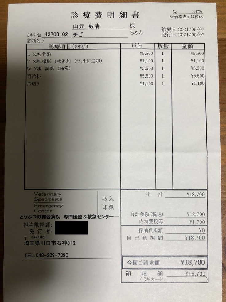 病院に着きマルを預け、ドキドキしながら検査の結果を待っていると、先生がやってきて説明がありました。骨折部位については骨の癒合が良好であることが確認できたため、高いところからのジャンプは控えて、それ以外の運動は徐々に解除してよいとのことでした。レントゲン写真できれいに骨がくっついているのがわかりホッとしました。(レントゲン写真は郵送されるそうなので、届き次第掲載いたします。)