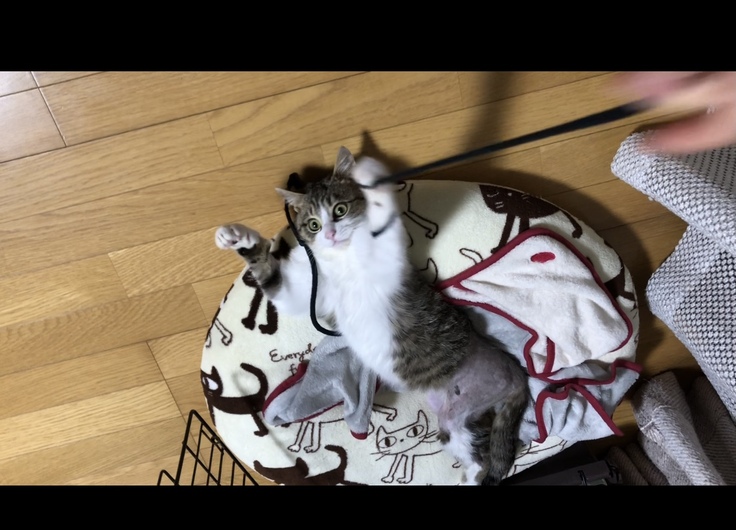 約2か月半のゲージ生活、よく頑張ってくれました。これからは自由に家の中を歩き回ってほしいです。