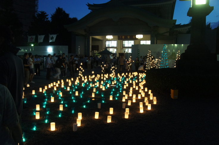 下図は、夜間の鎮魂のあかりの様子ですが、今年は竹あかりワークショップになります。
