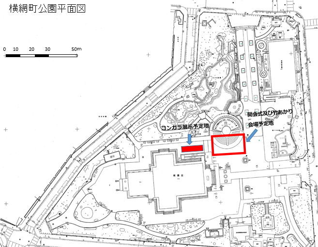 下図は東京都横網町公園の平面図で、シンポジウムは中央付近の東京都慰霊堂で開催し、ZOOM「みらクルTV」でLIVE配信し、後でYouTubeで見られるようにします。シティコンの現物展示は下図の赤塗の場所を予定し、最寄り駅はJR総武線両国駅です。