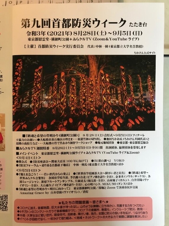右の写真は2021年8月28日から9月5日に予定される首都防災ウィークのたたき台(予告編)
