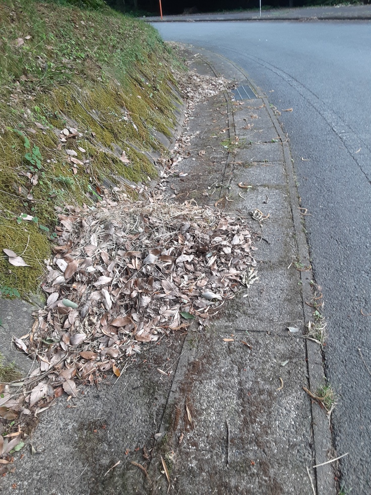 中に入れておくもの「基材」は、「落ち葉」で十分です。道路沿いにたくさんあります。