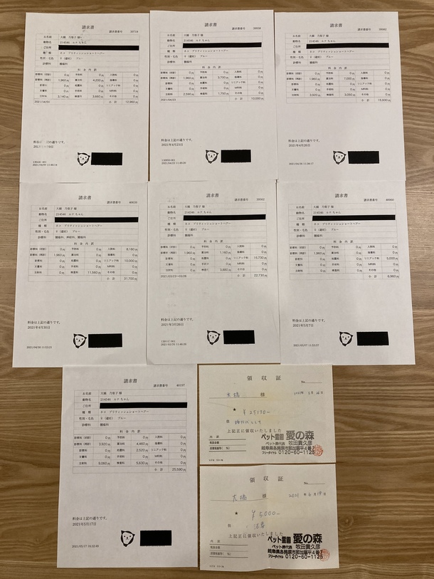 手術終了からルナちゃんが亡くなるまでの治療費として125,870円、火葬・葬儀、法要等の費用として30,170円がかかりました。